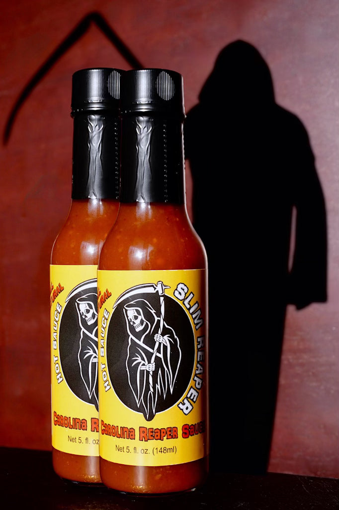 Indulge your taste buds in the bold and fiery experience of Slim Reaper Hot Sauce's "Original" Carolina Reaper Hot Sauce. Renowned as our flagship creation, this sauce is not for the faint of heart—it packs a punch with intense spiciness that aficionados crave. Carefully curated blends unfold a symphony of flavors, where the heat is expertly balanced with hints of smokiness and a touch of sweetness. Elevate your culinary adventures with a sauce that doesn't just bring the heat but also delivers a rich and flavorful experience. Unleash the intensity and savor the complex profile that defines our signature Carolina Reaper Hot Sauce.